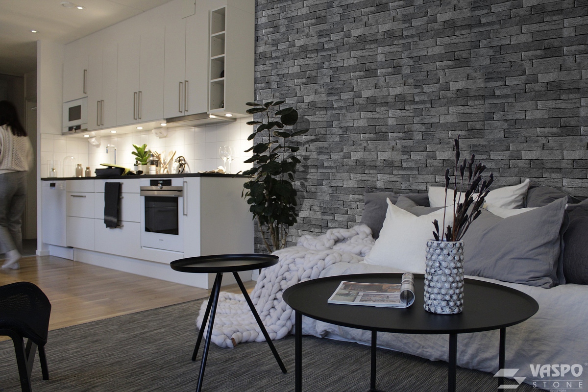 Ez a természetes kő hatású falburkolat harmonikus és letisztult atmoszférát teremt beltérben és kültéren egyaránt.