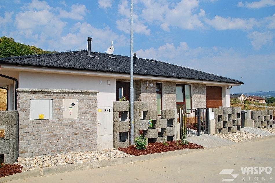A SLATE VARICOLOR / Bridlica štandard varicolor egy modern kőhatású beton falburkolat, amely a természetes pala hasított felületének megjelenését utánozza. A precíz gyártási technológiának köszönhetően a burkolat finom struktúrája és realisztikus kőhatása esztétikus és természetes felületet hoz létre modern és klasszikus környezetben egyaránt.